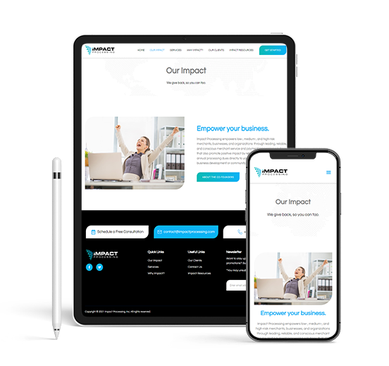 Impact Processing empowers low, medium, and high-risk merchants. They help eliminate your credit card processing fees and return up to 10% of your processing dues to you annually. They offer a full suite of payment acceptance tools in-store, online, and mobile, all designed to help build and grow your business and organization.